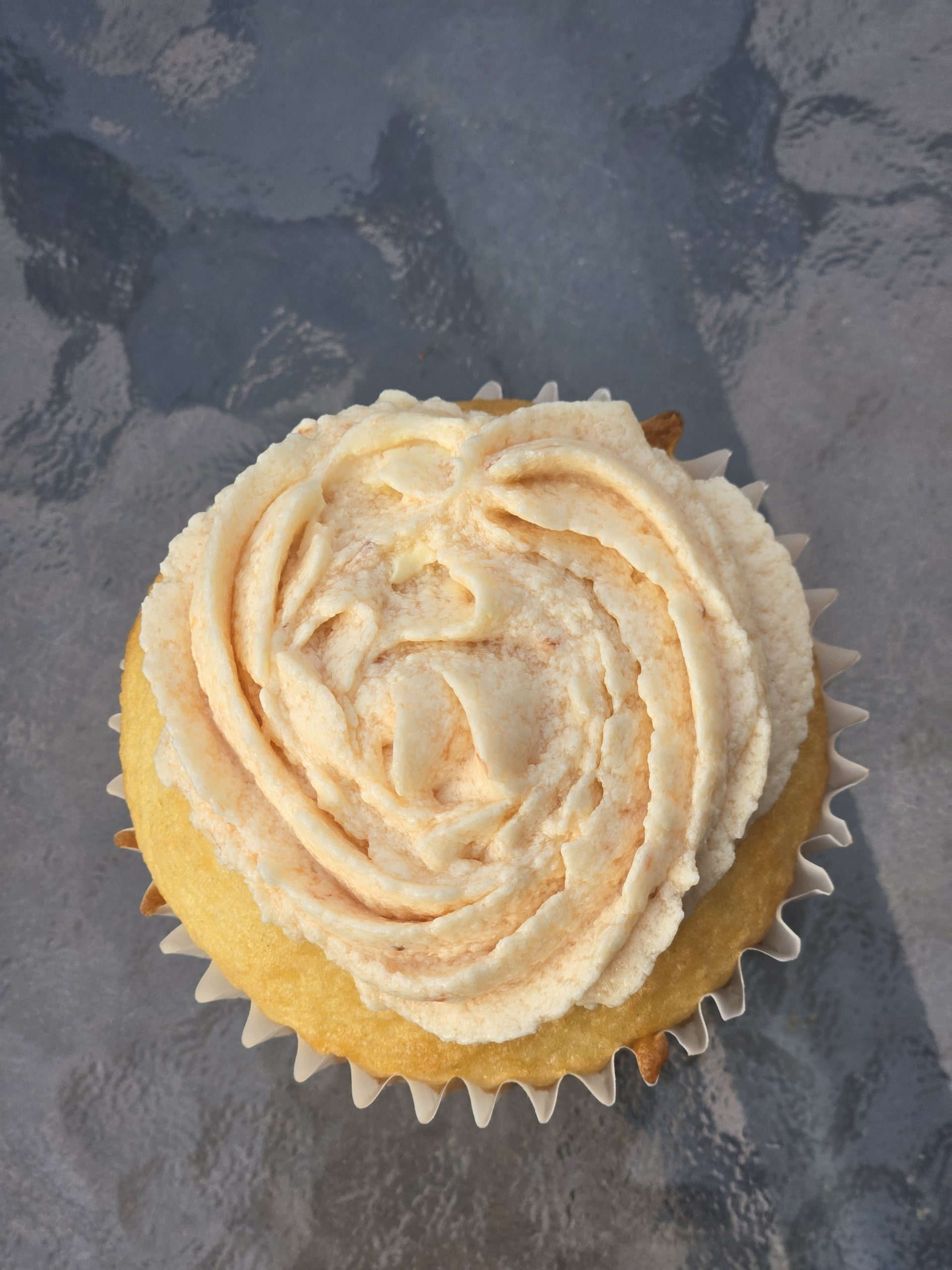Our Strawberry Vanilla cupcake blends the warmth of classic vanilla with the fresh, fruity sweetness of strawberrie jam. Topped with silky strawberry frosting, it’s a soft, elegant treat that’s as pretty as it is delicious.