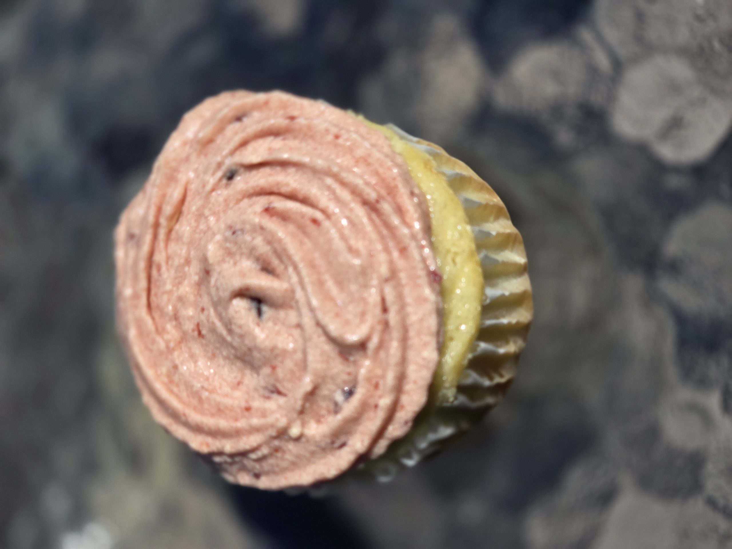 A light, fluffy vanilla cupcake topped with sweet cherry jam frosting and a burst of real cherry flavor in every bite.